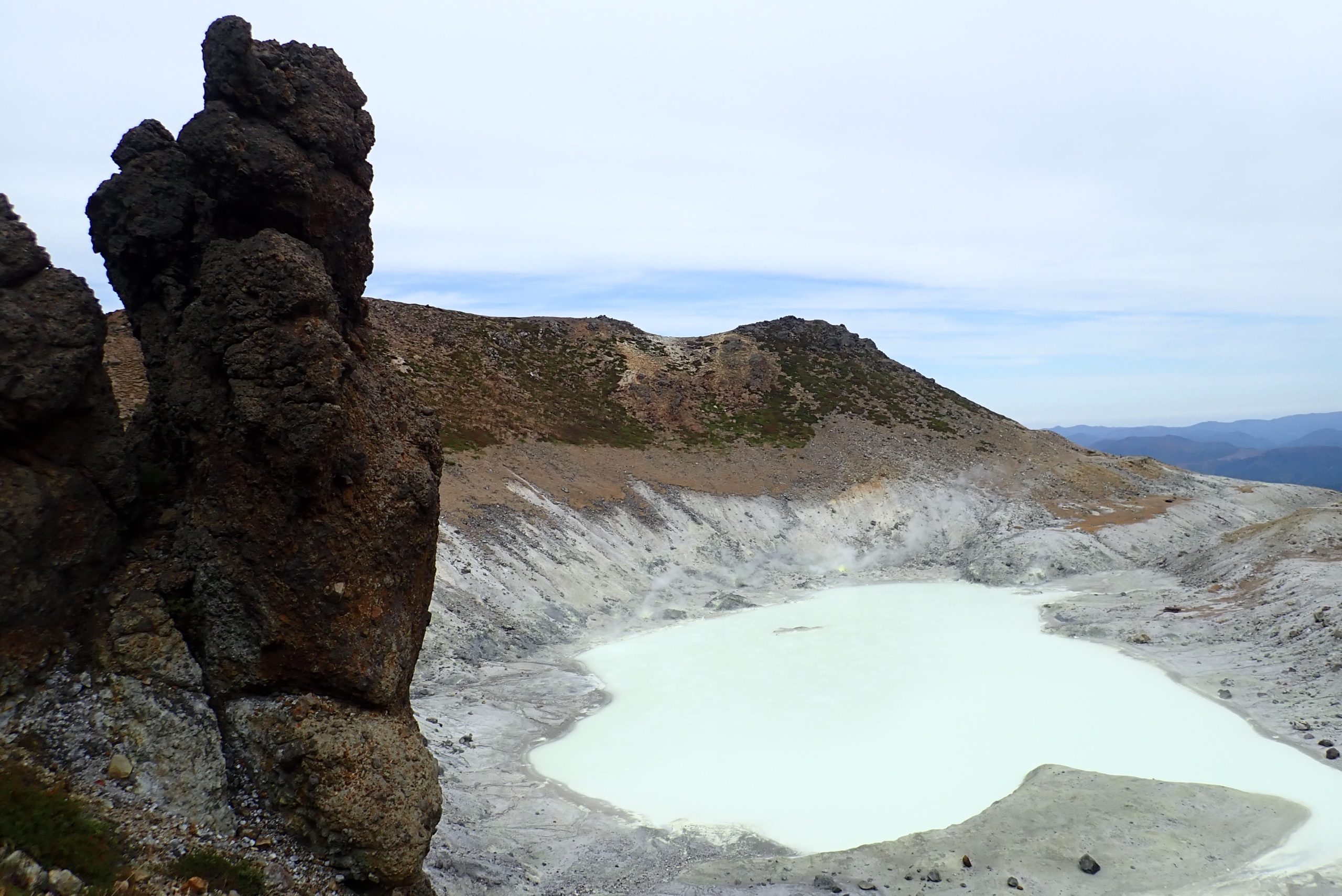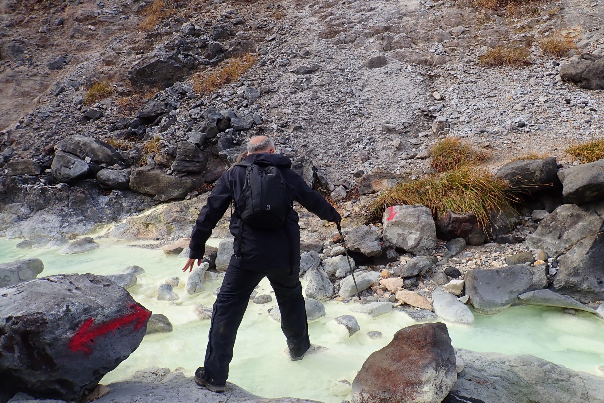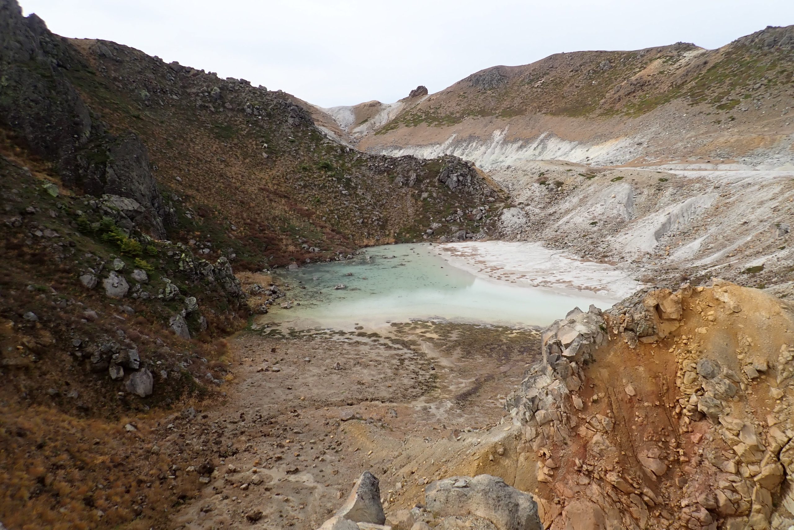 立ち入り禁止の火口湖、ブクブクいってます。有毒ガスがかなり強いよう。