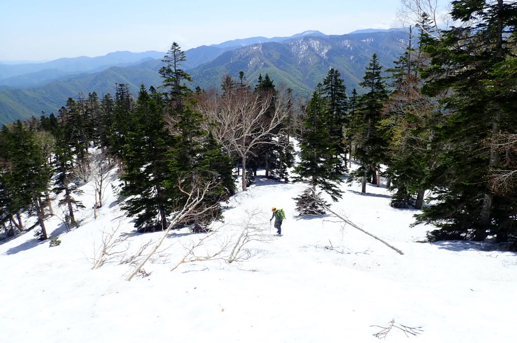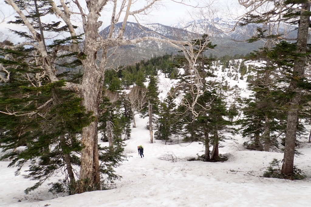 樹林が針葉樹に変わると周りの山がチラチラ見える。