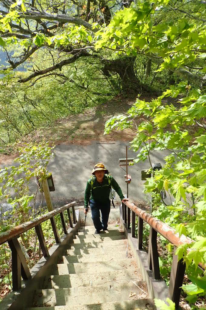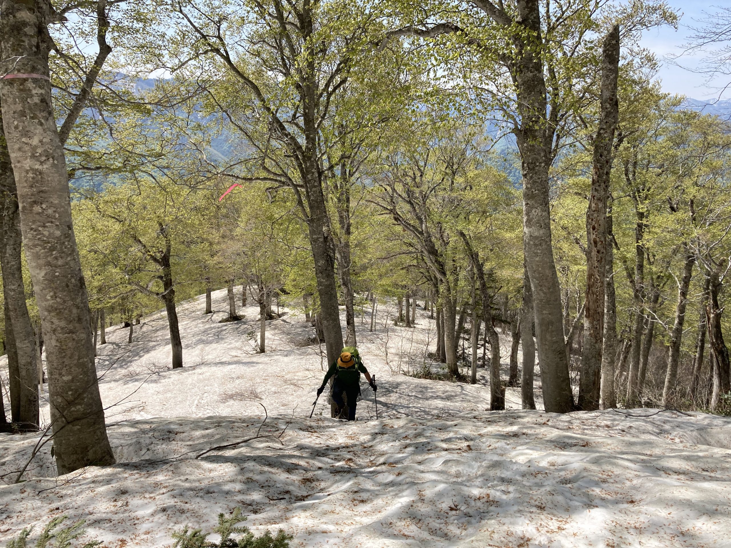 しばらくは雪もなく夏道の急登を黙々と。新緑綺麗だし山の雰囲気はすごくいい!!急だか道はよくて、晴れだとテンション上がるね⤴️